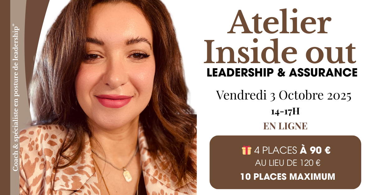 Un atelier interactif (pas un webinaire passif) pour activer ton leadership naturel et gagner en clarté et assurance. En 3h, tu identifies ce qui bloque, pratiques des outils concrets et repars avec un plan d’action clair. 📅 Vendredi 3 octobre – 14h à 17h (en ligne, via Google Meet) 🎯 10 places max 🎂 Offre anniversaire : 4 places à 90 € (code INSIDE90)